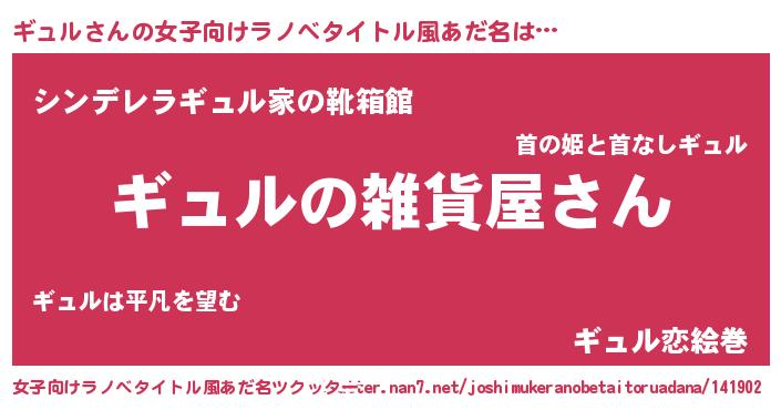 | 男性向けラノベタイトル風あだ名 | 『やはりギュルの青春ラブコメはまちがっている 』 |