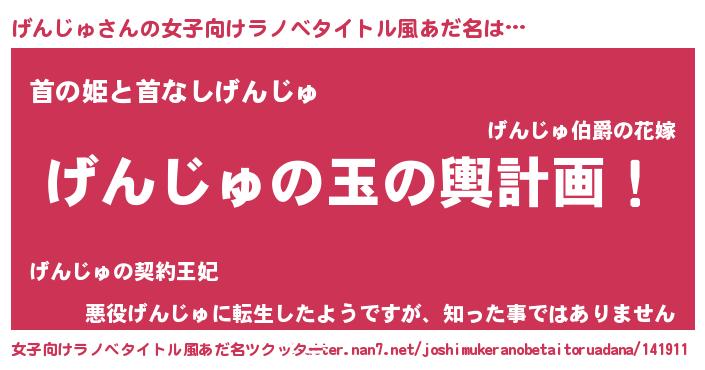 | 男性向けラノベタイトル風あだ名 | 『転生したらげんじゅだった件』 |