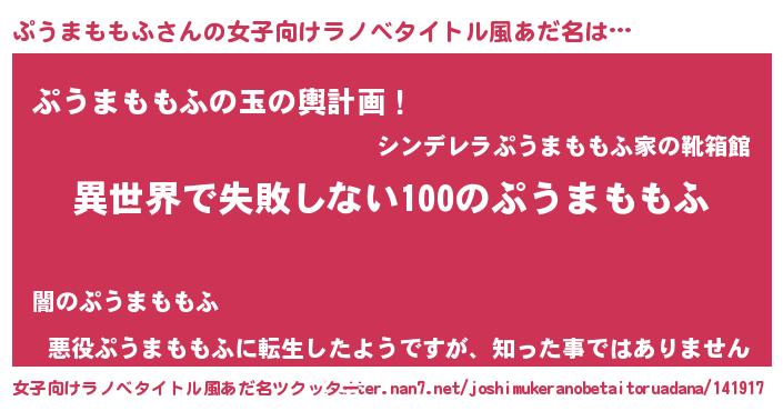 | 男性向けラノベタイトル風あだ名 | 『ぷうまももふという概念が存在しない退屈な世界 』 |