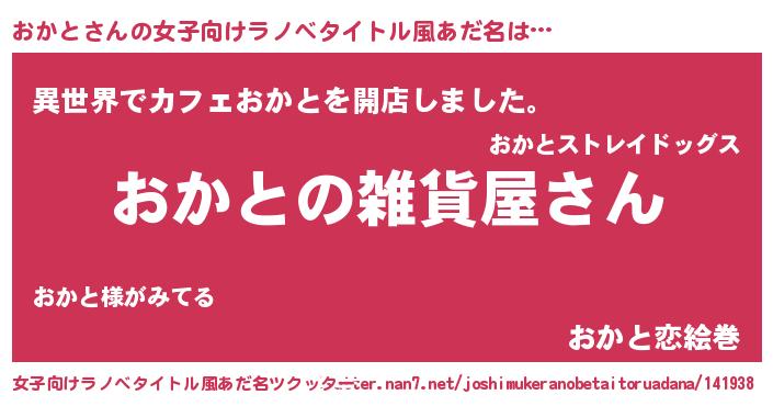 | 男性向けラノベタイトル風あだ名 | 『やはりおかとの青春ラブコメはまちがっている 』 |