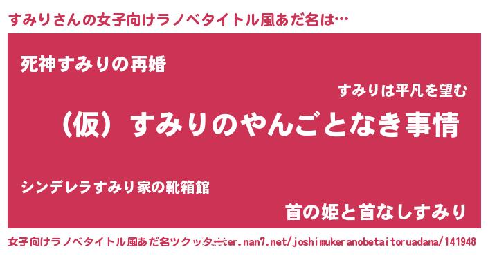 | 男性向けラノベタイトル風あだ名 | 『すみりの憂鬱』『はたらくすみりさま!』 |