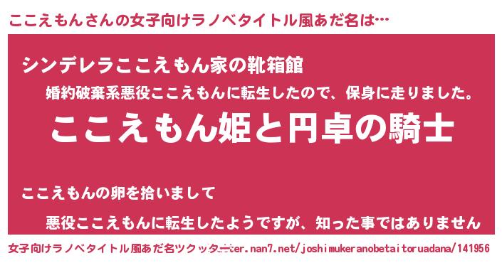 | 男性向けラノベタイトル風あだ名 | 『ココエモンアートオンライン』 |
