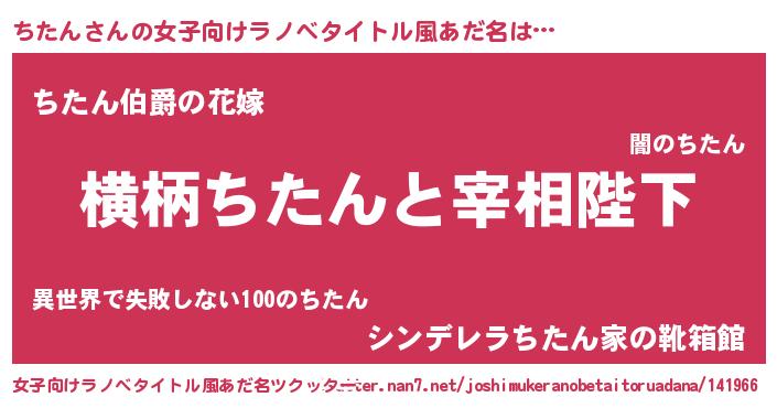 | 男性向けラノベタイトル風あだ名 | 『ちたんに滅ぼされるだけの簡単なお仕事です』 |
