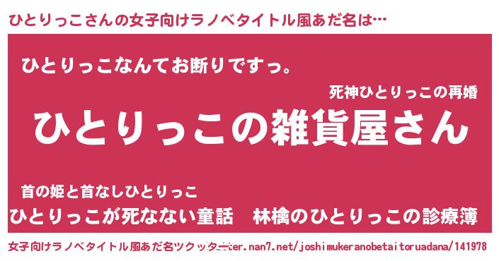| ファンタジー風あだ名 | 『エターナルヒトリッコー』『ゼヒトトゥ』 |
