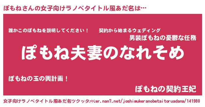 | 男性向けラノベタイトル風あだ名 | 『おまえをオタクにしてやるから、俺をぽもねにしてくれ! 』 |