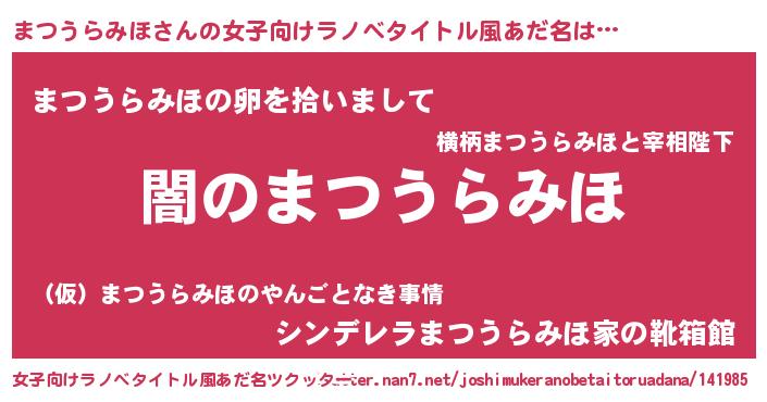 | 意味不明あだ名 | 『自称まつうらみほ』 |