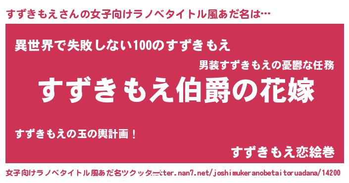 | 男性向けラノベタイトル風あだ名 | 『やはりすずきもえの青春ラブコメはまちがっている 』 |
