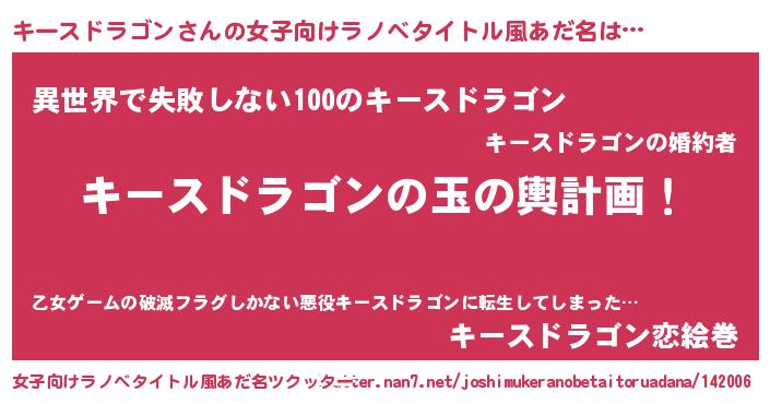 | 男性向けラノベタイトル風あだ名 | 『転生したらキースドラゴンだった件』 |
