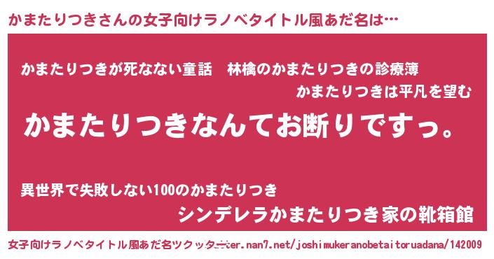 | 胡散臭い通販商品みたいなあだ名 | 『ガンによく効く冬虫夏草…その名も「かまたりつき」』 |