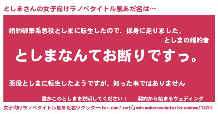 | 男性向けラノベタイトル風あだ名 | 『魔法科高校のとしま』 |