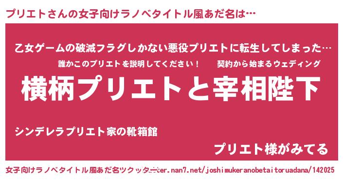| 男性向けラノベタイトル風あだ名 | 『プリエトに滅ぼされるだけの簡単なお仕事です』 |