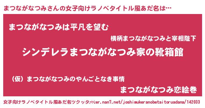| 伝説のあだ名 | 『孤高の遊び人まつながなつみ』 |