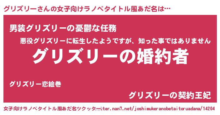 | 男性向けラノベタイトル風あだ名 | 『うちの娘の為ならば、俺はもしかしたらグリズリーも倒せるかもしれない。』 |