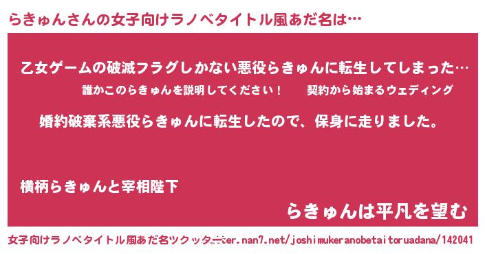 | 男性向けラノベタイトル風あだ名 | 『ラキュンスレイヤー』 |