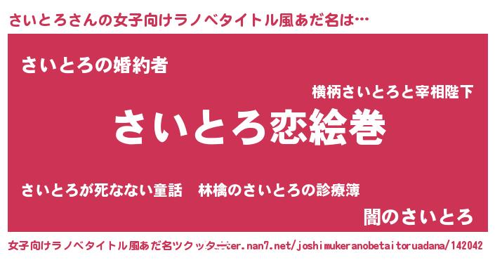 | ヘコむあだ名 | 『豆乳』『さいとろ(笑)』『さいもー』 |