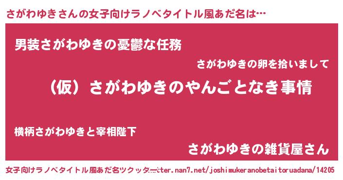 | 胡散臭い通販商品みたいなあだ名 | 『必ず成功するブレスレット…その名も「さがわゆき」』 |
