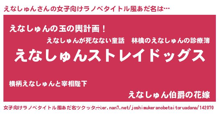 | 肩書あだ名 | 『えなしゅん閣下』『えなしゅん少尉』 |