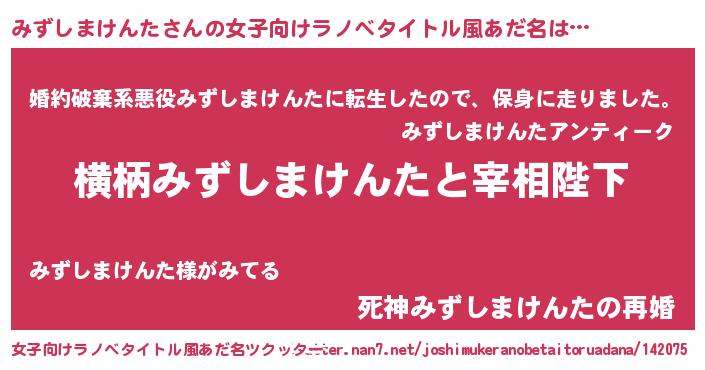 | 男性向けラノベタイトル風あだ名 | 『みずしまけんたに滅ぼされるだけの簡単なお仕事です』 |