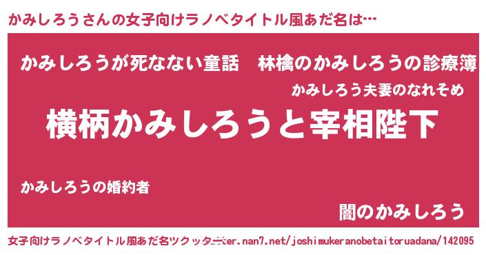 | 男性向けラノベタイトル風あだ名 | 『かみしろうに滅ぼされるだけの簡単なお仕事です』 |
