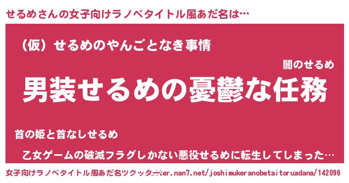 | 胡散臭い通販商品みたいなあだ名 | 『億万長者になれる水晶球…その名も「せるめ」』 |