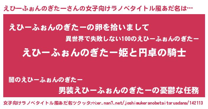 | 男性向けラノベタイトル風あだ名 | 『えひーふぉんのぎたーの憂鬱』 |