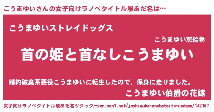 | 男性向けラノベタイトル風あだ名 | 『はたらくこうまゆいさま!』 |