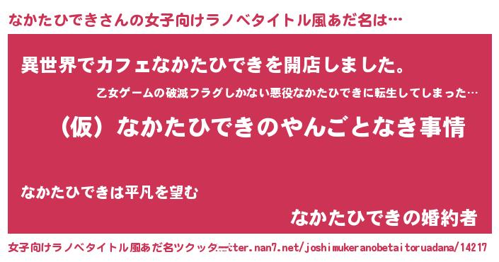 | 胡散臭い通販商品みたいなあだ名 | 『必ず成功するブレスレット…その名も「なかたひでき」』 |
