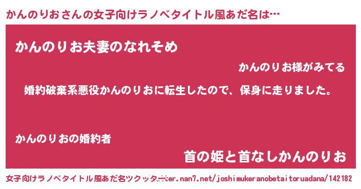 | 男性向けラノベタイトル風あだ名 | 『カンノリオスレイヤー』 |