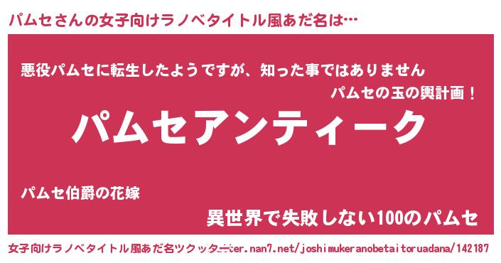 | 男性向けラノベタイトル風あだ名 | 『魔法科高校のパムセ』 |