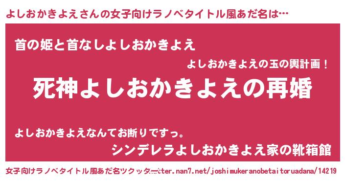 | 男性向けラノベタイトル風あだ名 | 『ノーゲーム・ノーヨシオカキヨエ』 |