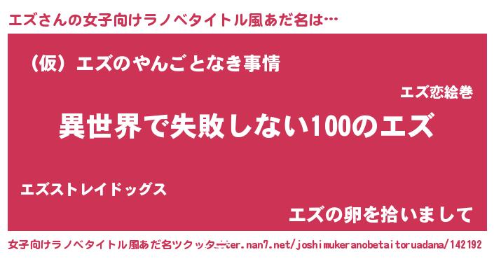 | 男性向けラノベタイトル風あだ名 | 『エズという概念が存在しない退屈な世界 』 |