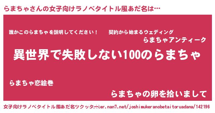 | 男性向けラノベタイトル風あだ名 | 『らまちゃという概念が存在しない退屈な世界 』 |