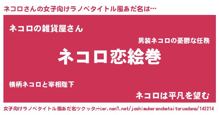| 男性向けラノベタイトル風あだ名 | 『ノーゲーム・ノーネコロ』 |