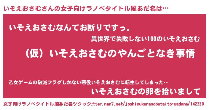 | 男性向けラノベタイトル風あだ名 | 『いそえおさむの憂鬱』 |