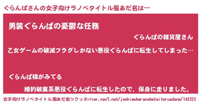 | 男性向けラノベタイトル風あだ名 | 『魔弾の王とぐらんぱ』 |