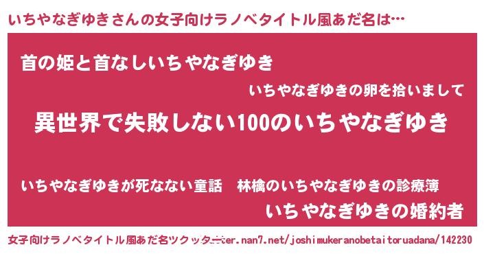 | 男性向けラノベタイトル風あだ名 | 『いちやなぎゆきという概念が存在しない退屈な世界 』 |