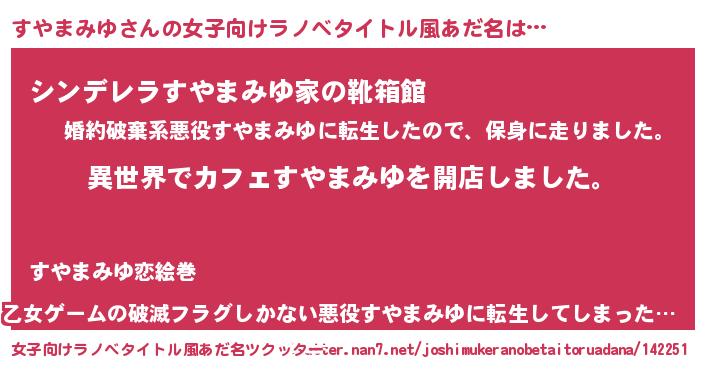 | 男性向けラノベタイトル風あだ名 | 『誰もが恐れるあのすやまみゆが、ぼくの専属メイドになるようです。』 |