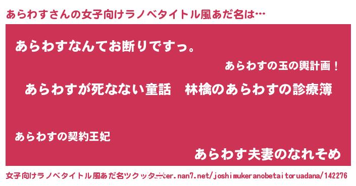 | ヘコむあだ名 | 『あらわす(笑)』『あらふぇ~』 |