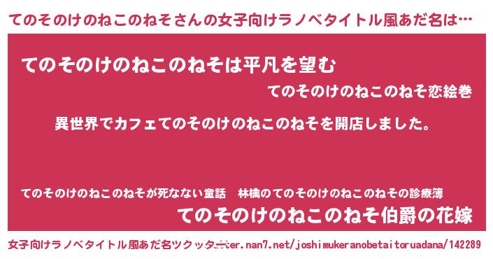 | 男性向けラノベタイトル風あだ名 | 『誰もが恐れるあのてのそのけのねこのねそが、ぼくの専属メイドになるようです。』 |