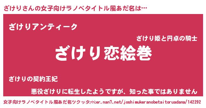 | 男性向けラノベタイトル風あだ名 | 『ノーゲーム・ノーザケリ』 |