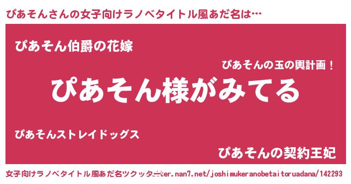 | 意味不明あだ名 | 『とにかく怪しいぴあそん』 |