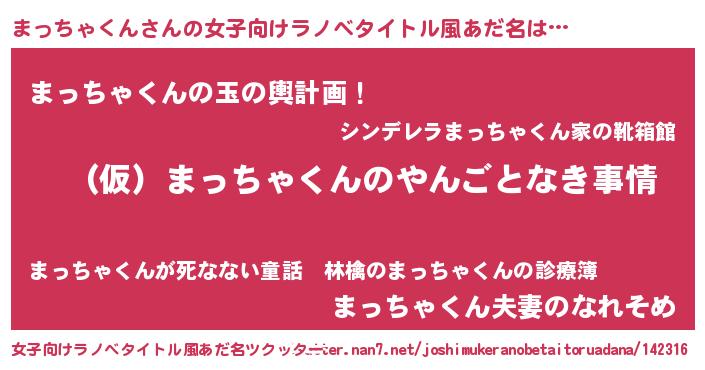 | 胡散臭い通販商品みたいなあだ名 | 『必ず成功するブレスレット…その名も「まっちゃくん」』 |