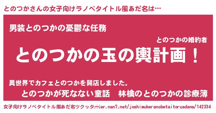 | ヒーロー風カッコイイあだ名 | 『仮面トノダー』『ウルトラとのつかマン』 |