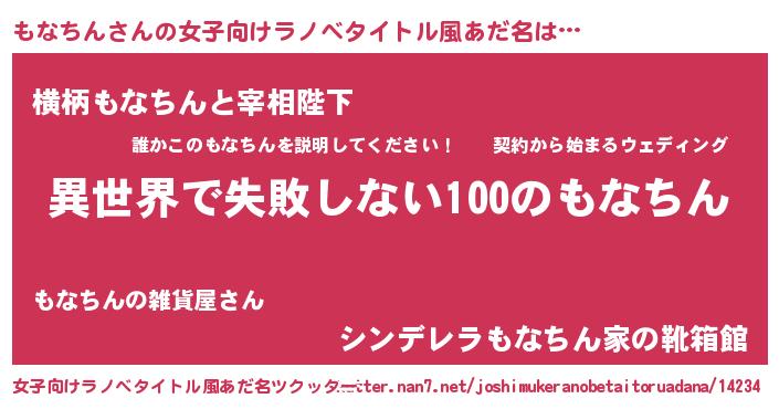 | 男性向けラノベタイトル風あだ名 | 『もなちんという概念が存在しない退屈な世界 』 |