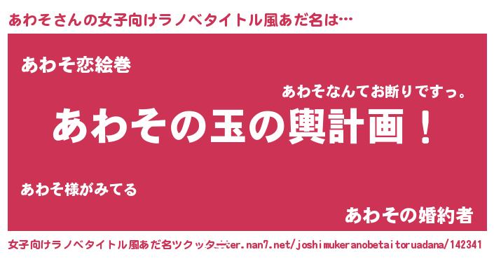 | 男性向けラノベタイトル風あだ名 | 『転生したらあわそだった件』 |