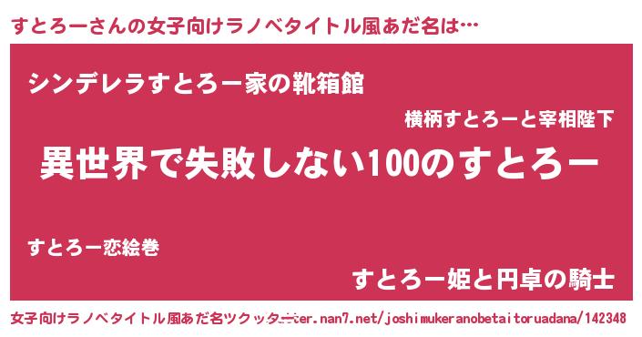 | 男性向けラノベタイトル風あだ名 | 『すとろーという概念が存在しない退屈な世界 』 |