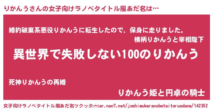 | 男性向けラノベタイトル風あだ名 | 『りかんうという概念が存在しない退屈な世界 』 |