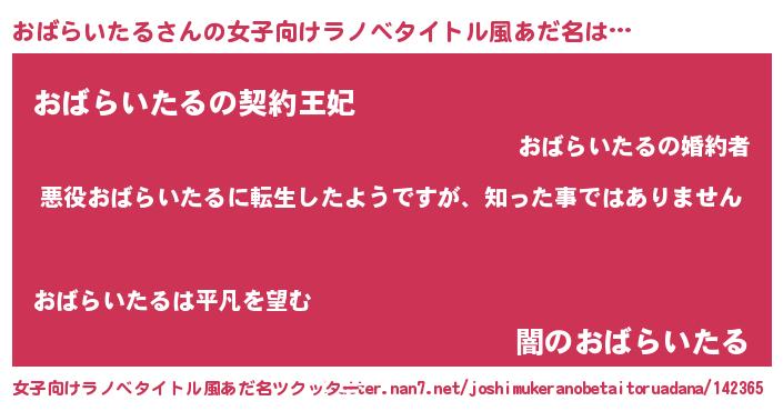 | ヒーロー風カッコイイあだ名 | 『仮面オバダー』『ネオオバライタル』 |