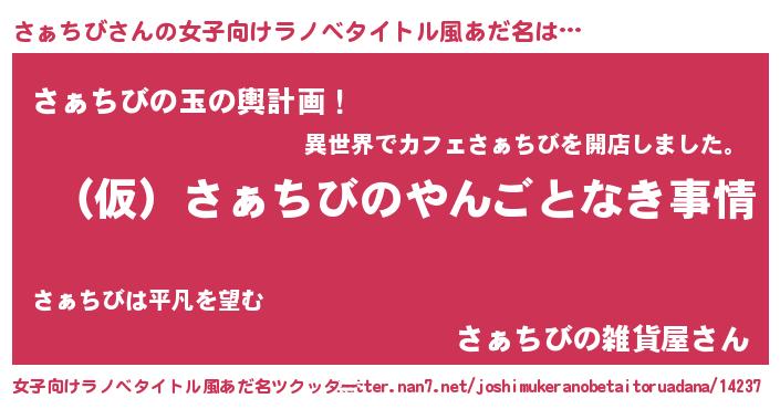 | 胡散臭い通販商品みたいなあだ名 | 『必ず成功する霊験あらたかなお札…その名も「さぁちび」』 |
