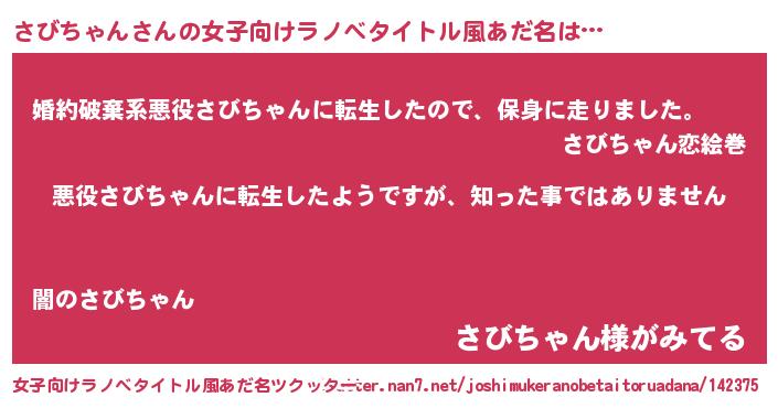 | 男性向けラノベタイトル風あだ名 | 『この素晴らしい世界にさびちゃんを!』 |